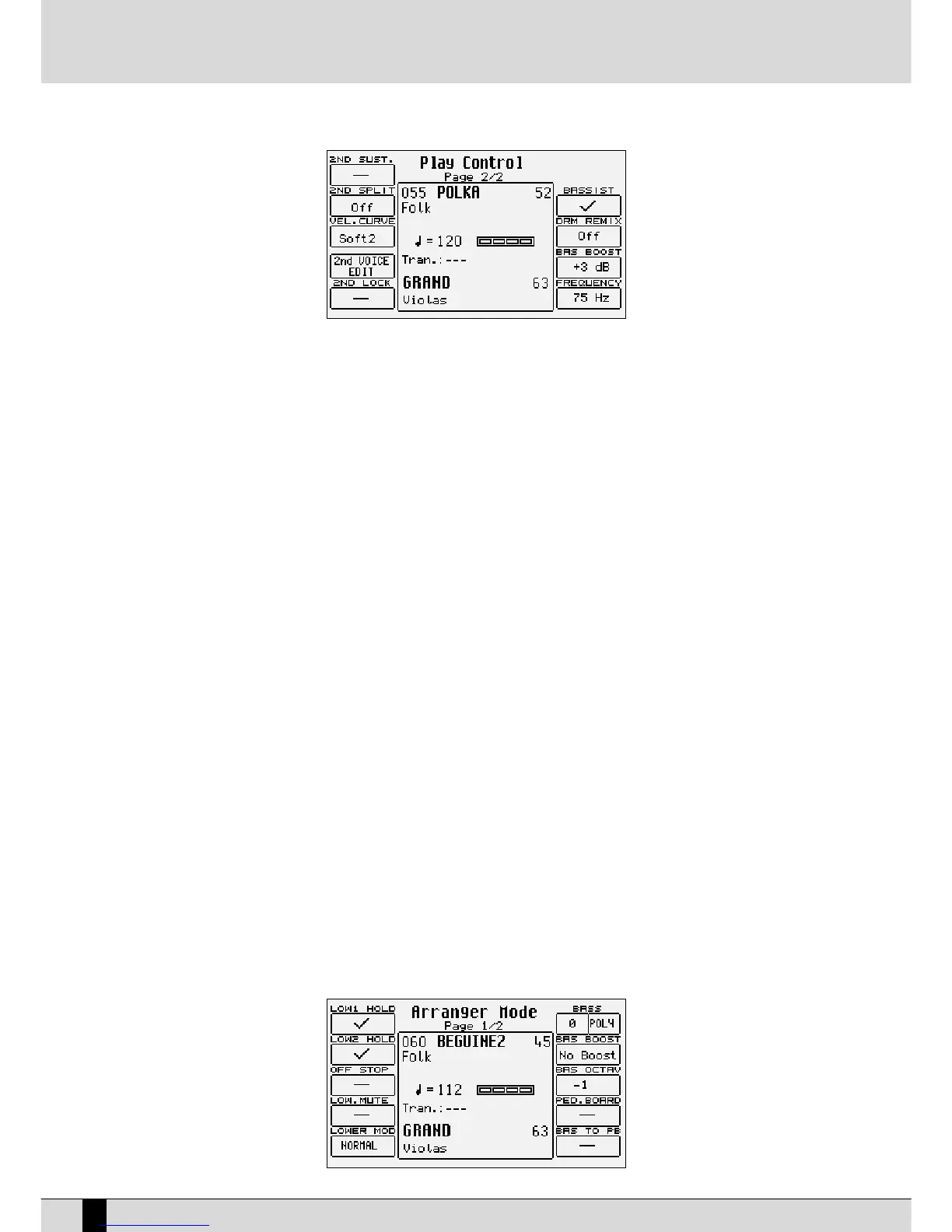 F5 2 ND Lock:This makes it impossible to change the timbre assigned to Second Voice by calling up a Preset.