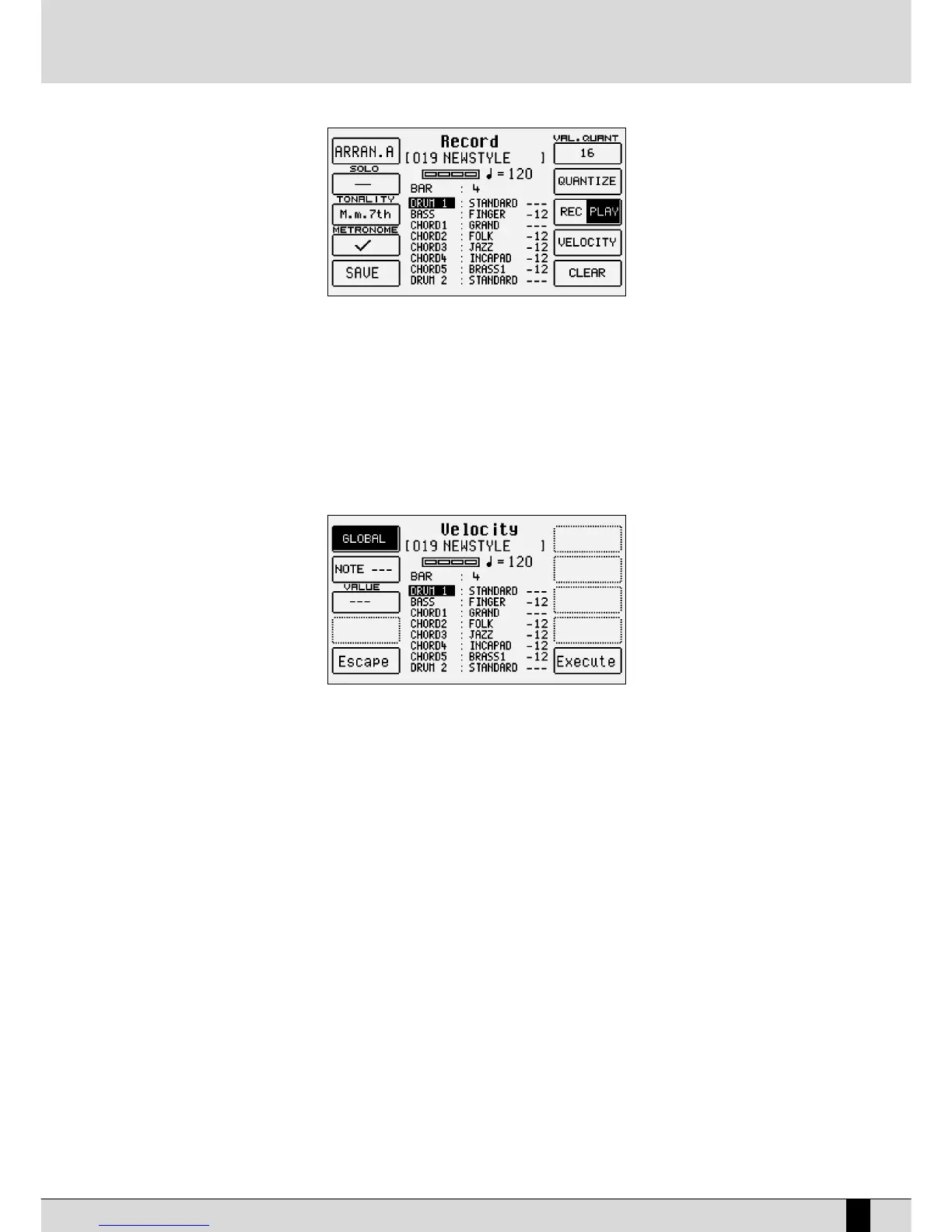 the tonality has been selected, establish which Part is to be recorded using F1 and the relative track, by selecting it with push buttons CUR-