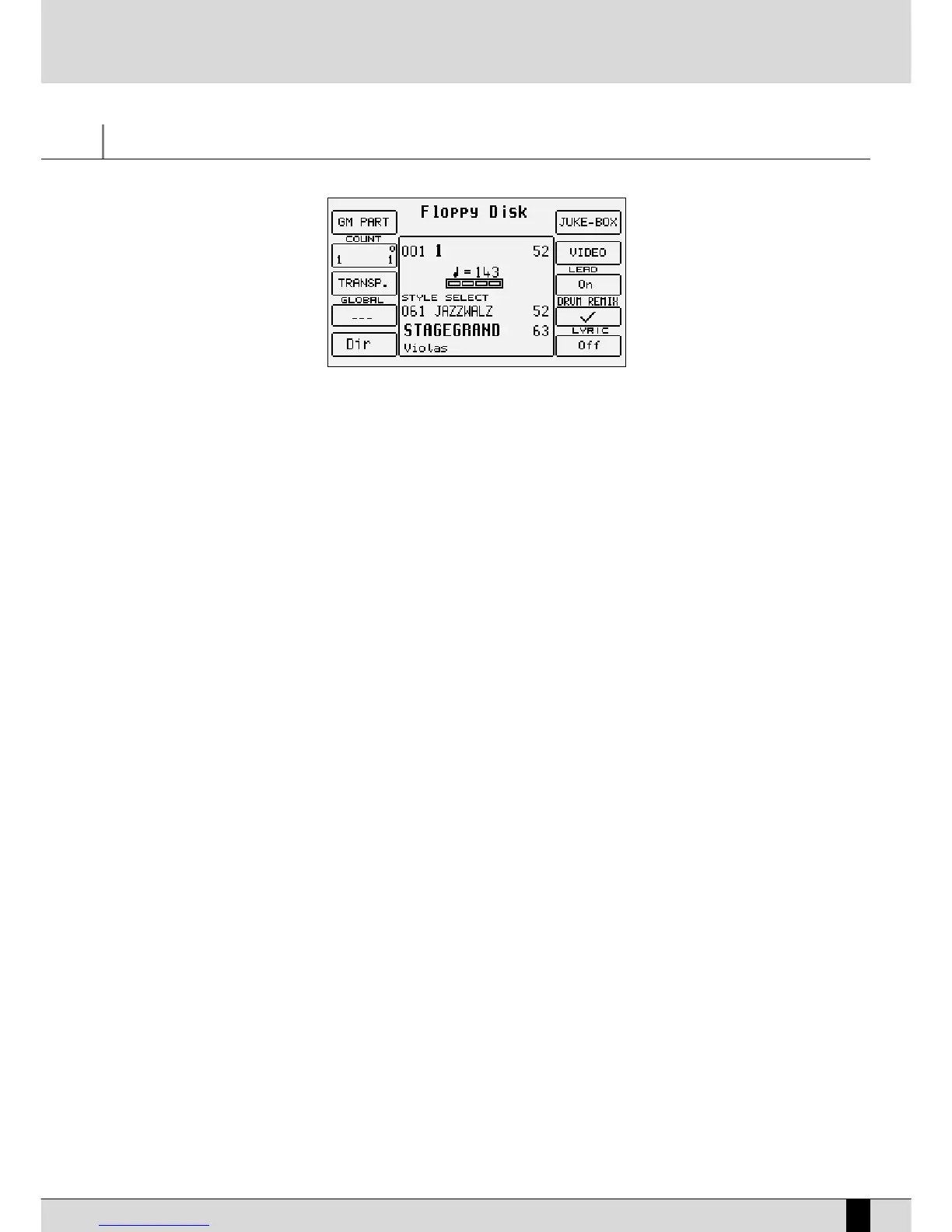the Midi file, using the VALUE/BALANCE buttons once you have selected Style Select using the INTRO-END 1/REMIX SELECT button. Vice