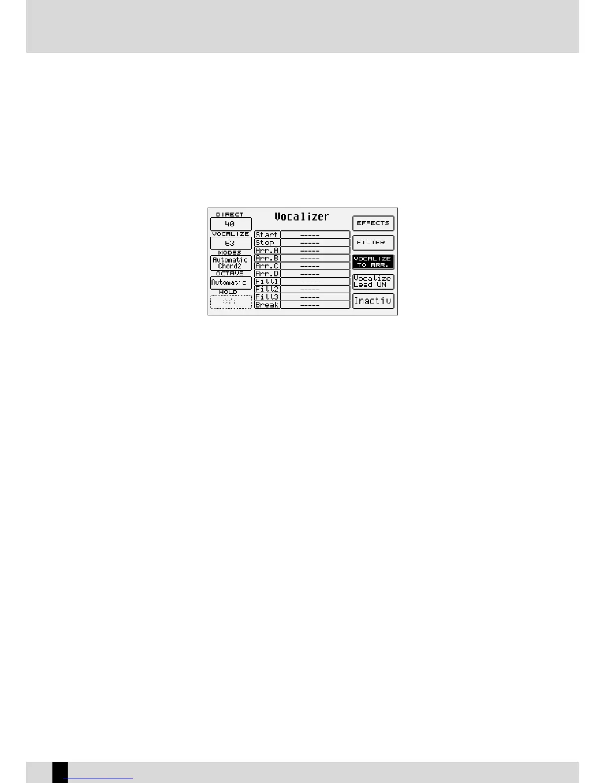 to control a similar external unit. “Inactive” deactivates the Vocalizer control via the keyboard, but not via MIDI.