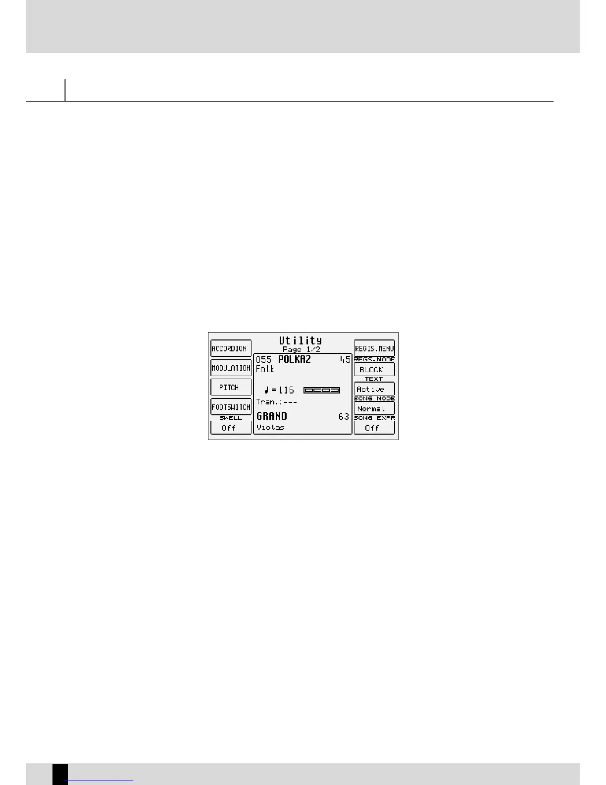 call-up of the TXT files. The programming of a Registration does not entail any special menu with all the parameters and values available and