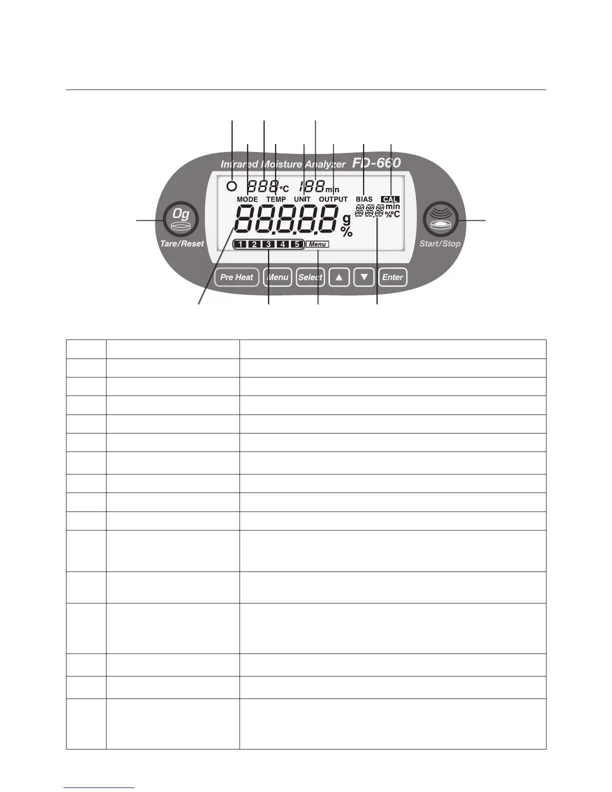 Temperature display Used to display the temperature under the heater lid.