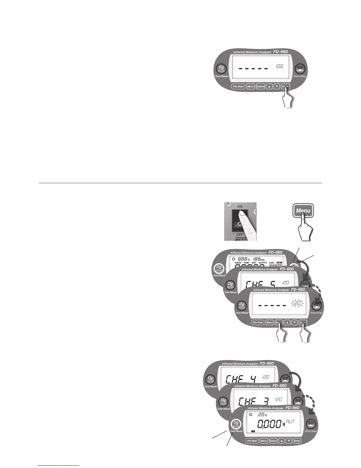 A beep sounds, "All contents displayed" → "CHE5" → "-----" are