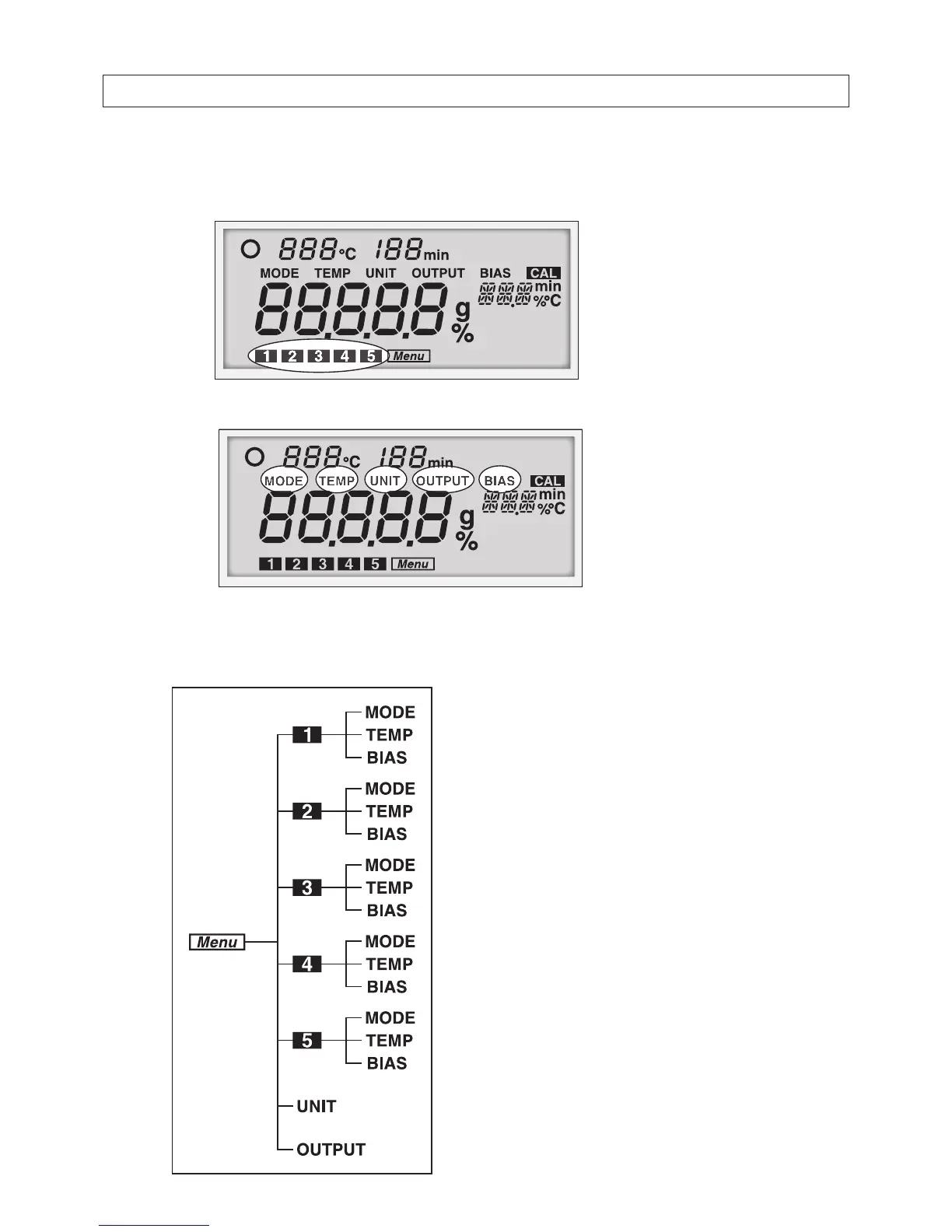 Next, specify MODE (measuring mode), TEMP (drying temperature), and BIAS (offset value).