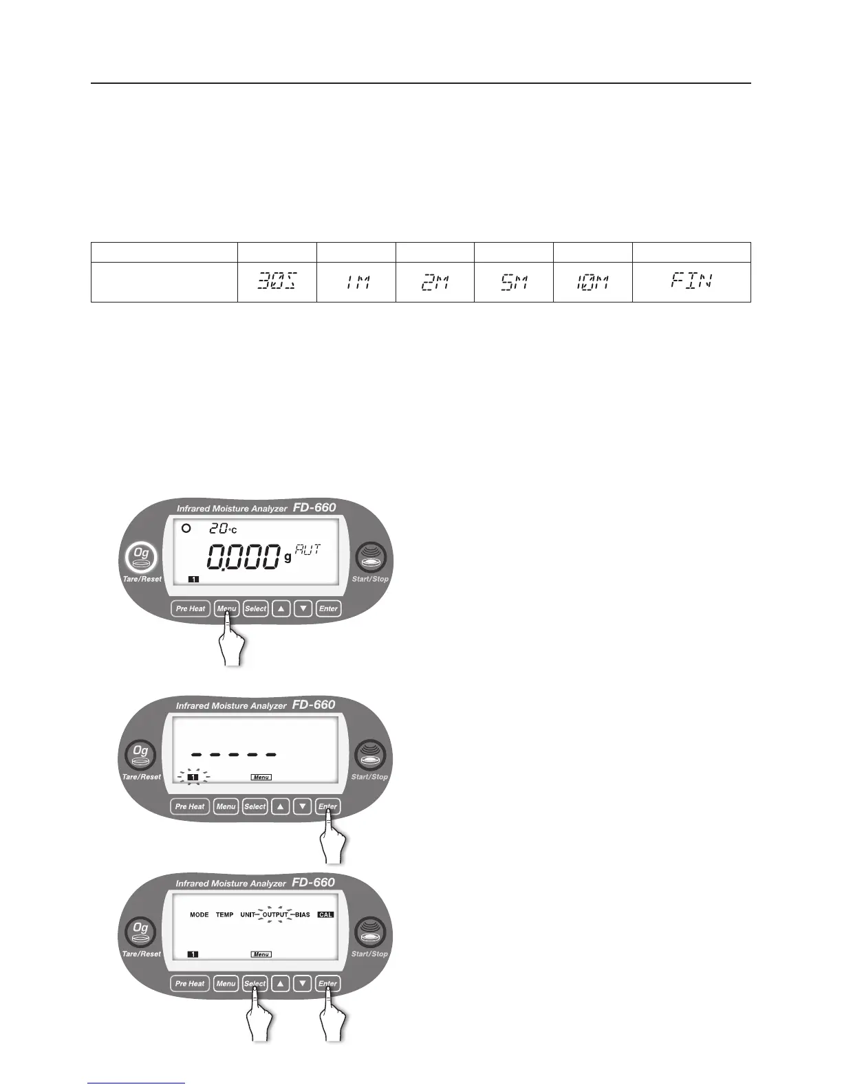 “UNIT” → “OUTPUT” → “BIAS” → “CAL” → “MODE” → ….