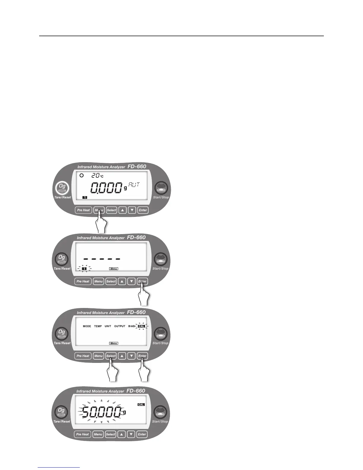 * The heater lid must be closed during calibration to avoid wind effects. If you wish to abort a calibration already
