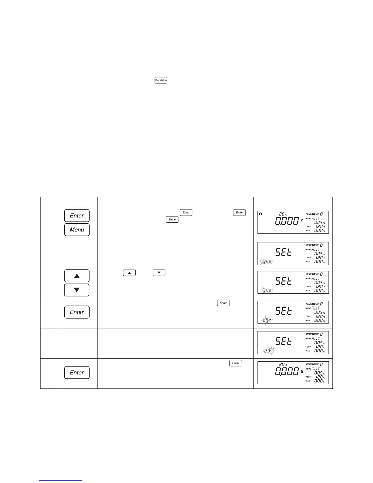 time of shipment, whenever the key is pressed to specify measuring conditions the indicator