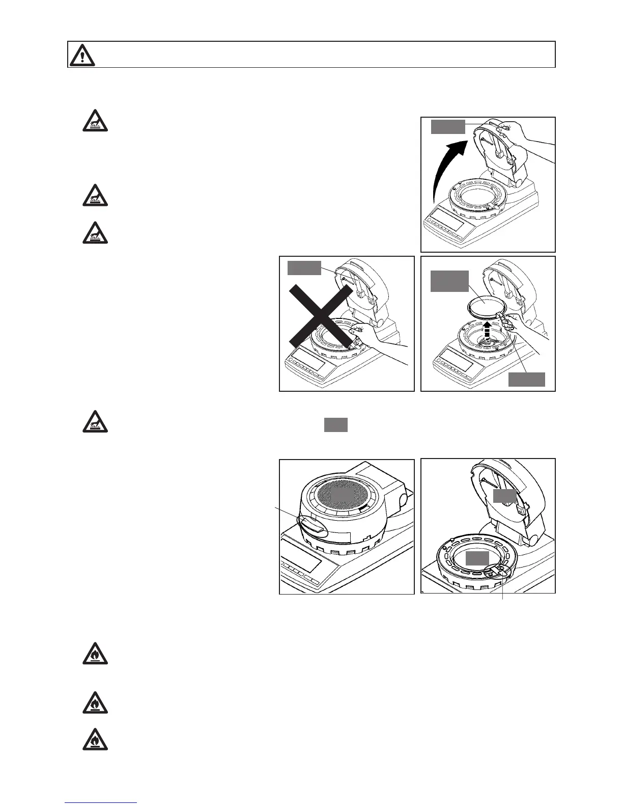 When removing a sample dish, do not allow your hands to come into