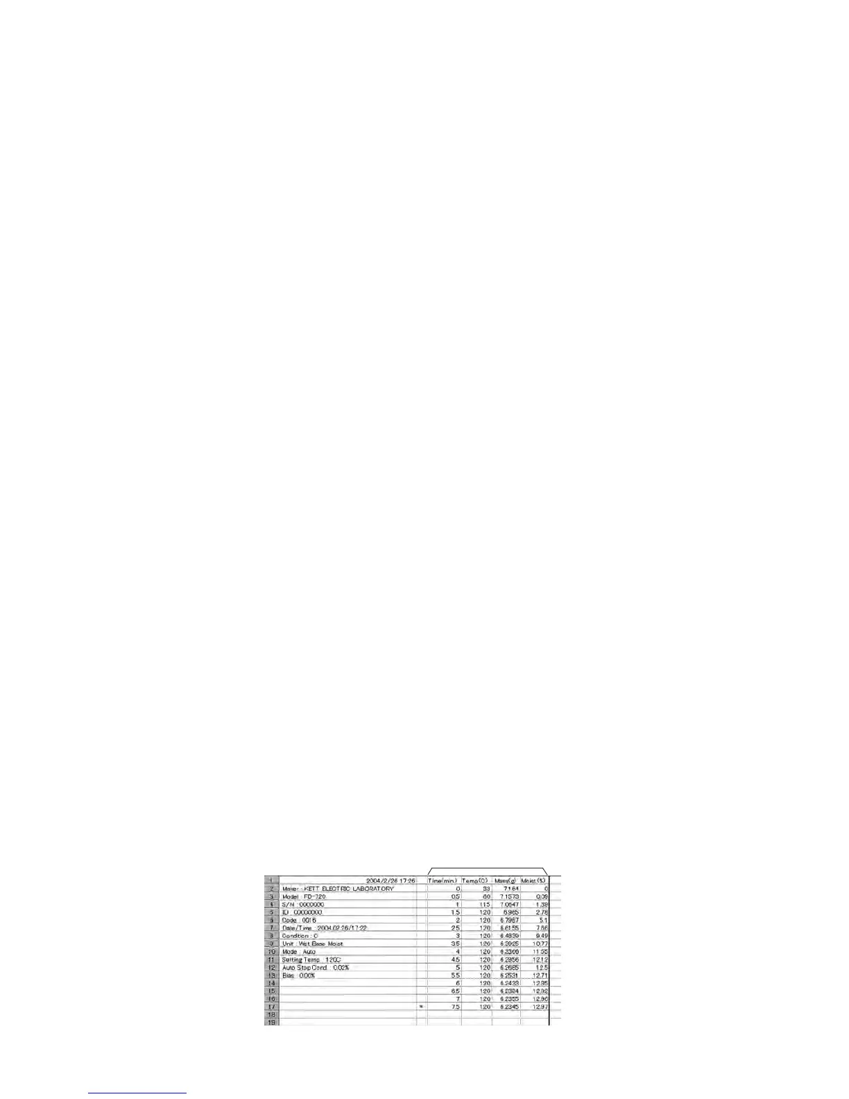 tab + “XXX.X” (5-byte measuring time) + tab + “XXX” (3-byte of thermistor temperature) + tab +