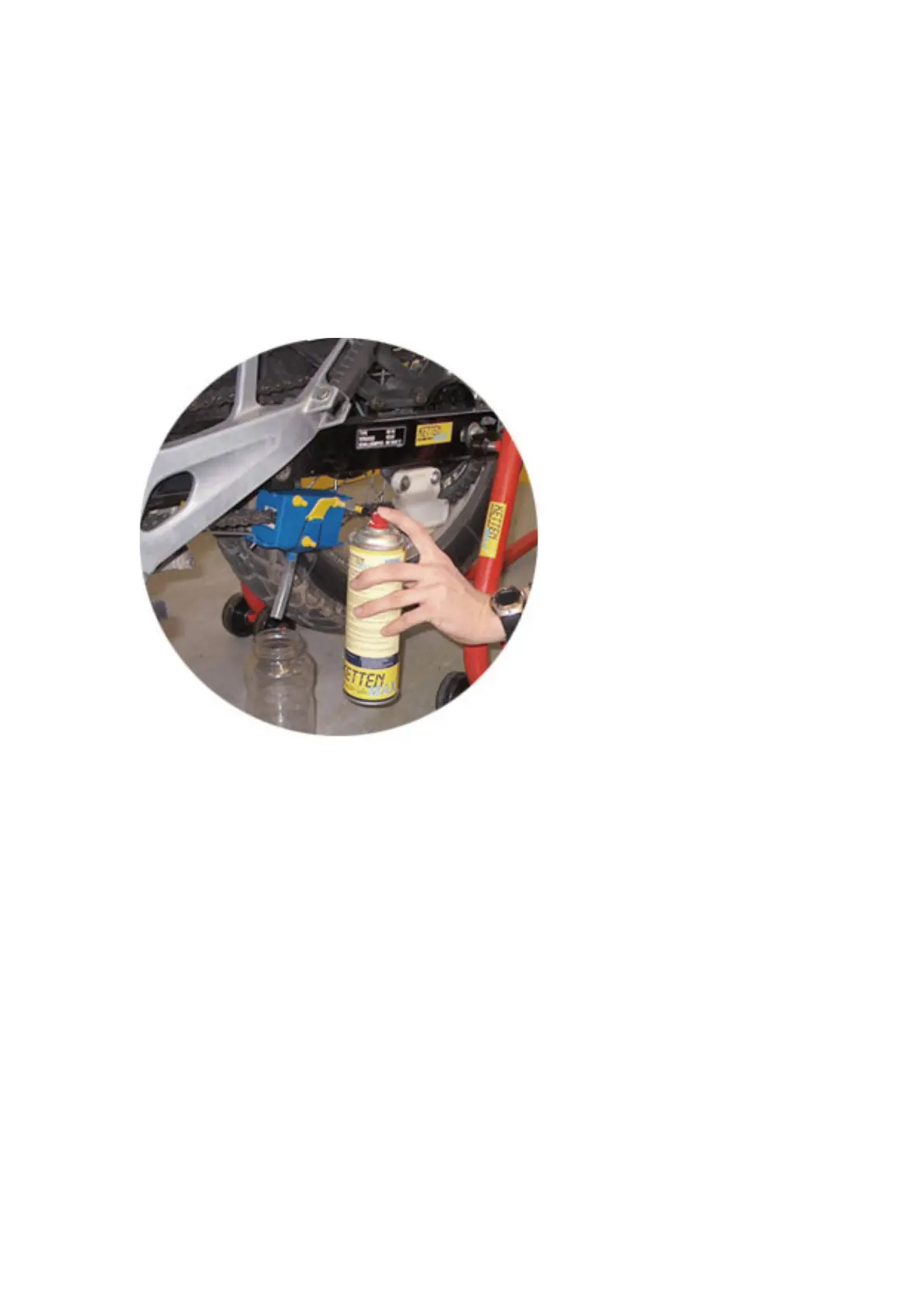 Spray in the lubricant in steps. Rotate the rear wheel slowly (2 x chain runs per minute). The lubricant