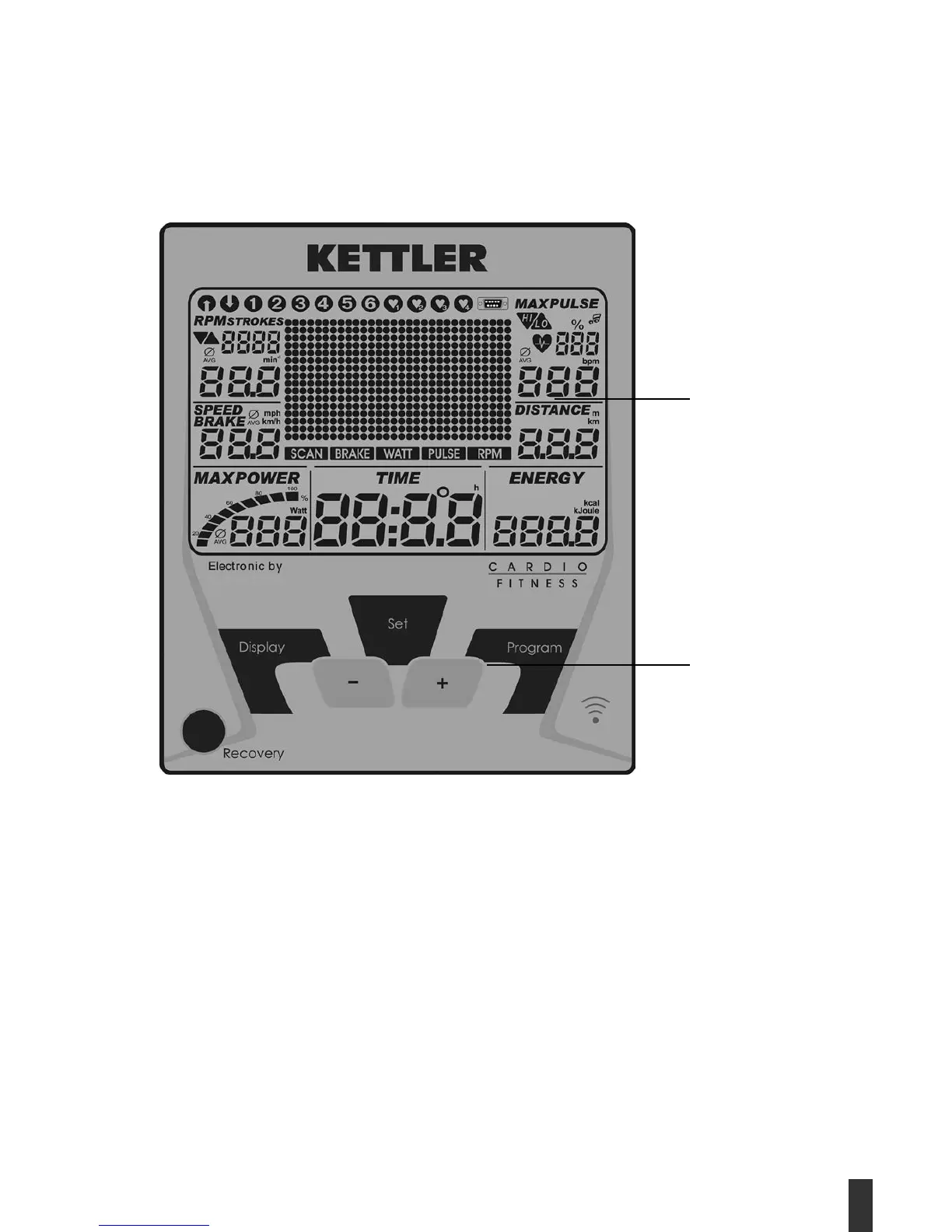 et un espace d’affichage (display) avec des symboles pouvant