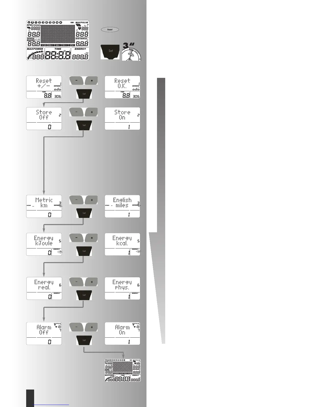 ”Set” indrukken: gekozen instelling wordt opgeslagen