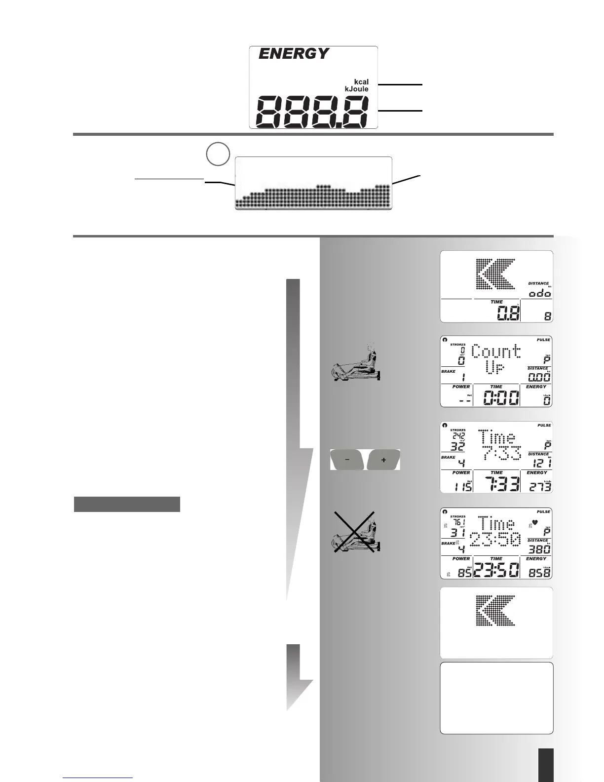 golpes de remo, tiempo, distancia y energía