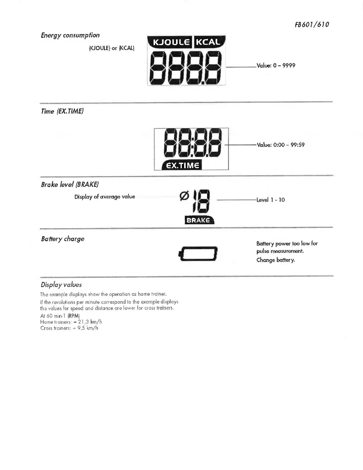 Kettler GOLF M - Core Training Metrics; Energy Consumption Display; Time and Brake Level Indicators; Battery Charge Status