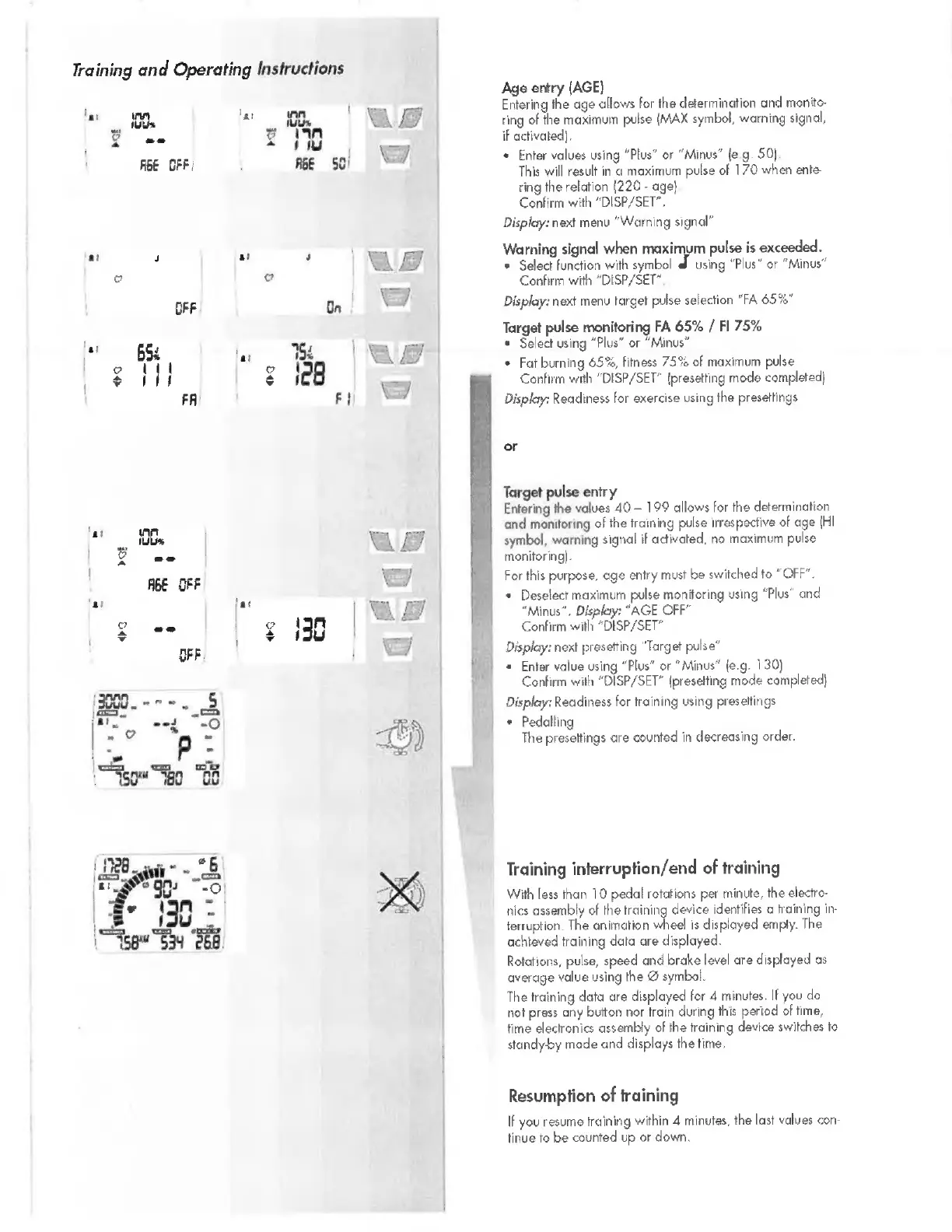 Kettler GOLF M - Advanced Training Parameters; Age and Warning Signal Configuration; Target Pulse Monitoring and Entry