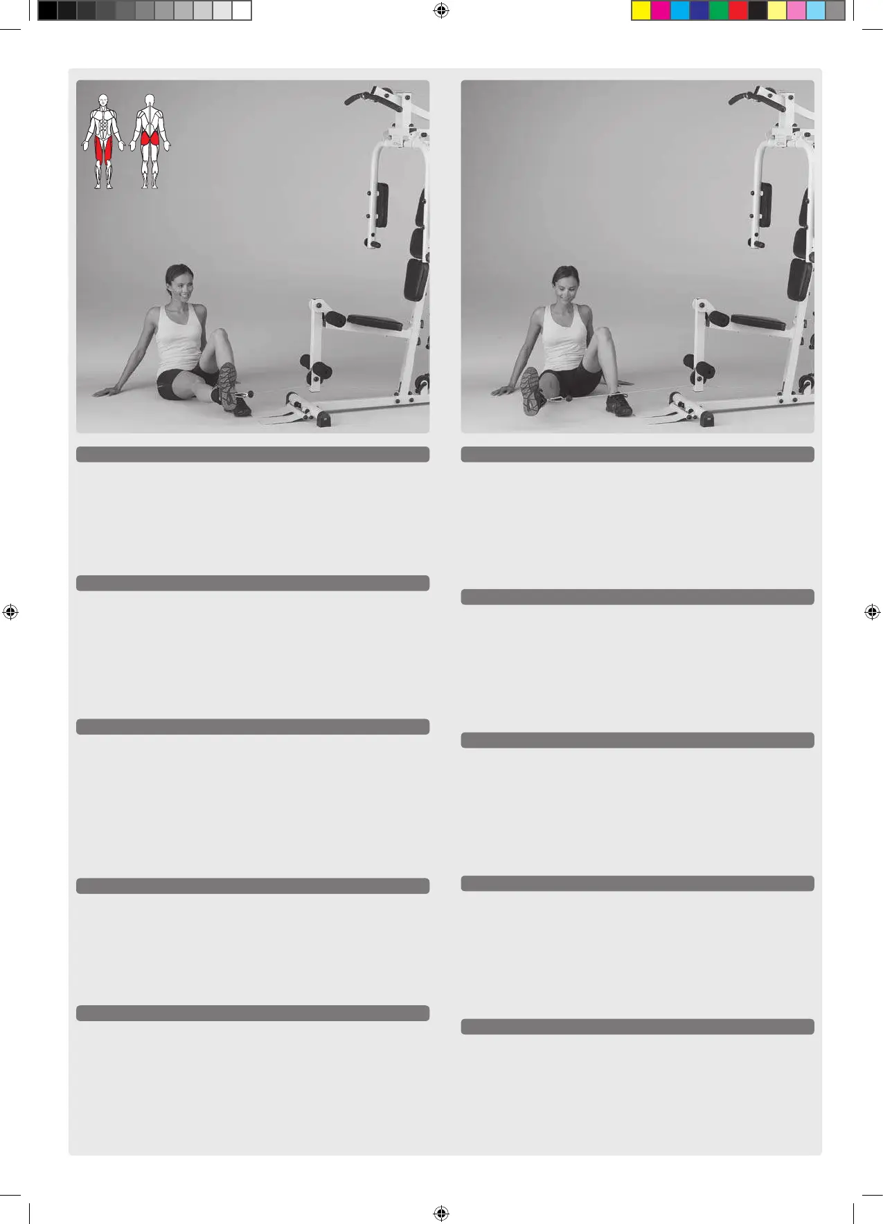 Sedere lateralmente all’attrezzo. Applicare la cinghia alla gam-