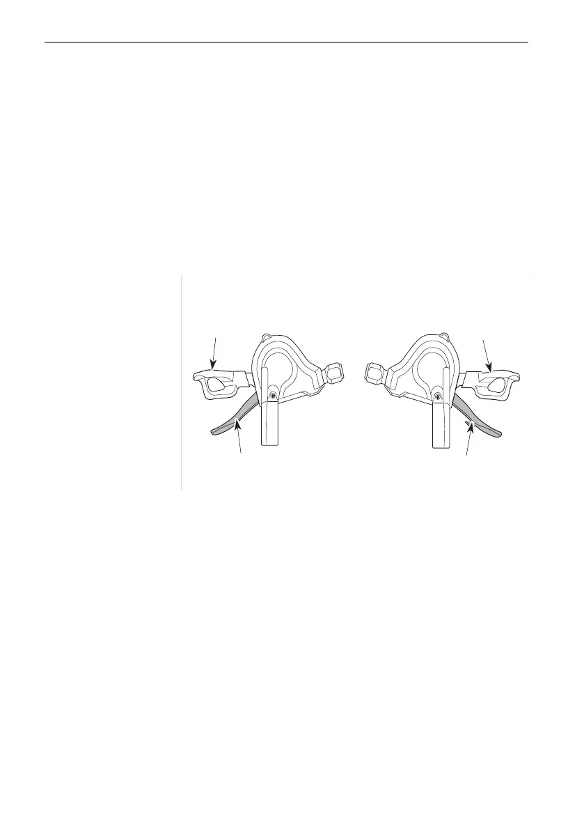 Figure 23: Down shifter (1) and up shifter (2) on the left (I) and right (II) shift