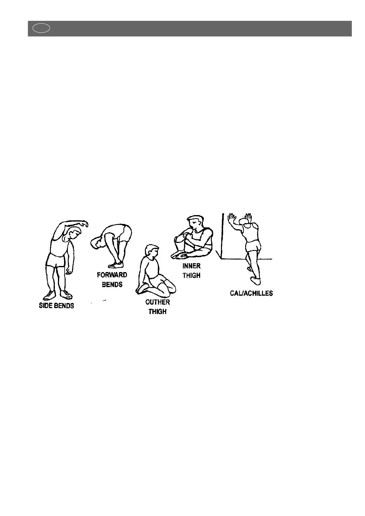 muscle injury. It is advisable to do a few stretching exercises as shown below. Each stretch should be help for approximately 30 se-