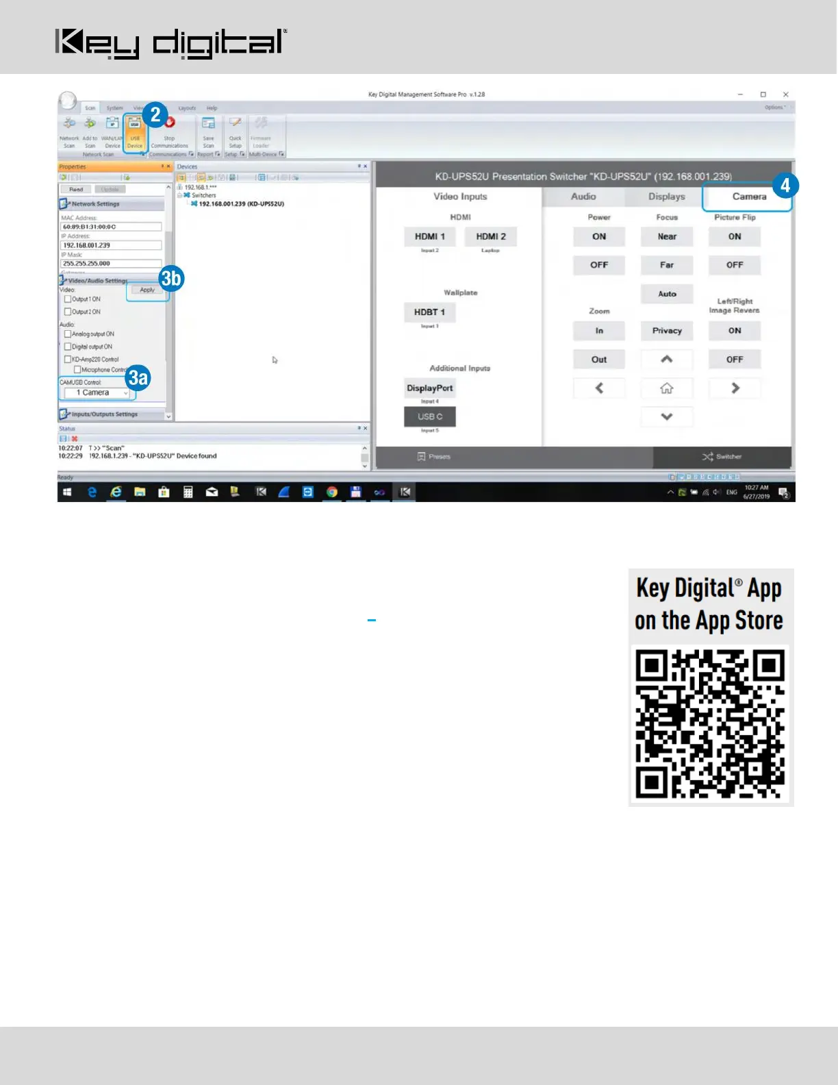 4. In KDMS™ Pro, select the Camera tab 4 to enter the camera controls page