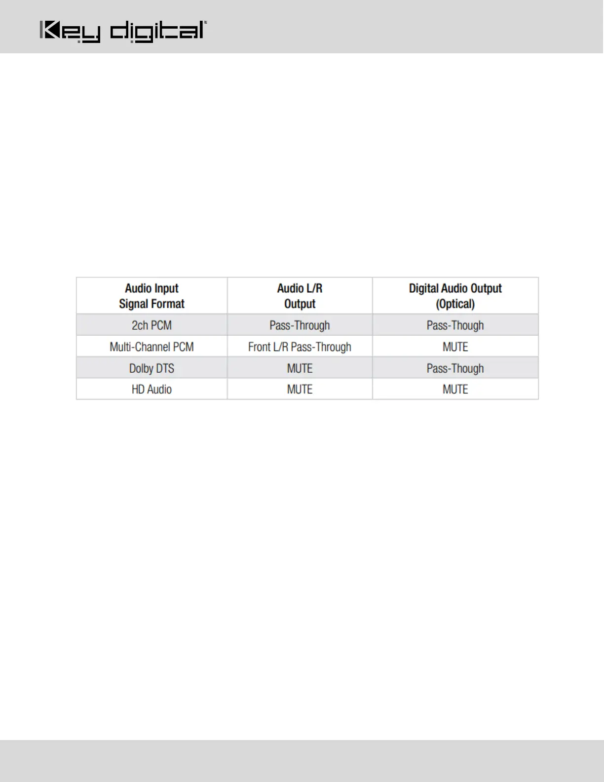 • There are no format conversion features. For example, to achieve 2ch analog audio output, the selected