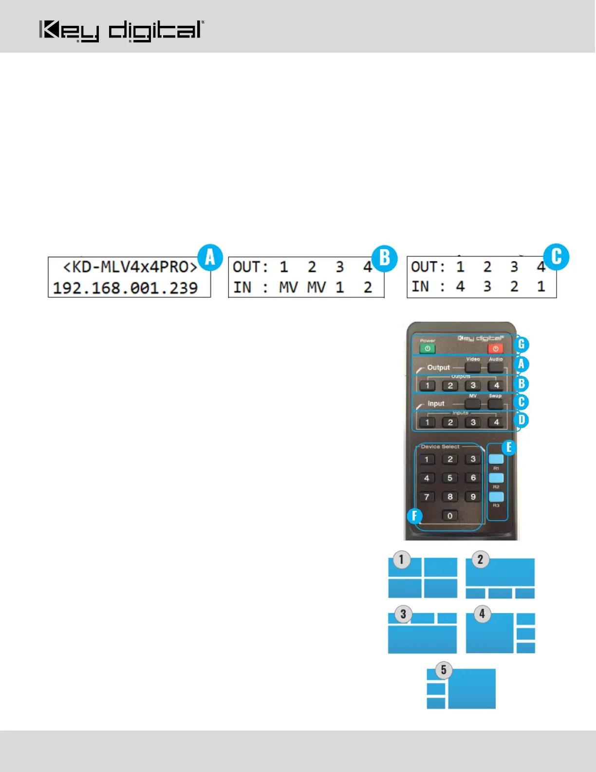 2. Layout 1-9, using Device Select buttons (section F)