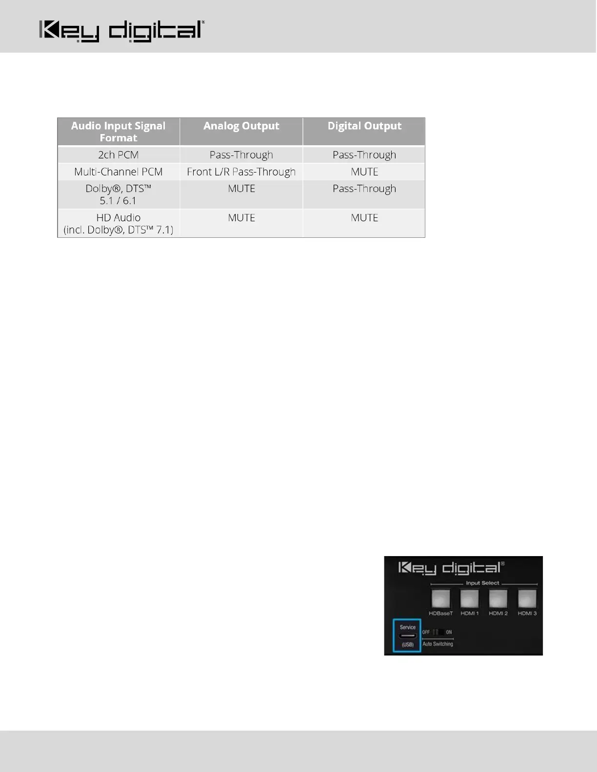 • Automatically mutes if audio formatting is not PCM, Dolby®, or DTS™