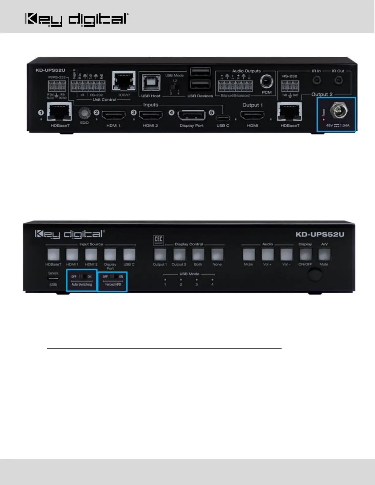 disabled when the KD-UPS52U is manually controlled by the front panel button, IR, RS-232, TCP/IP, or