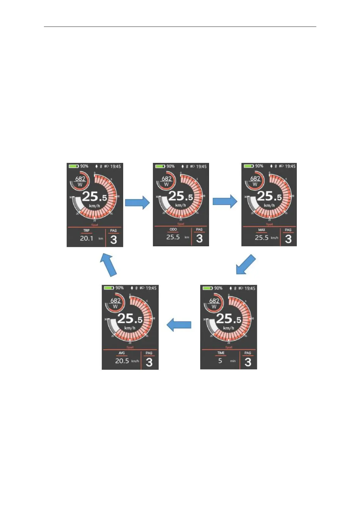 After switching on the E-bike system, the display will show real-time Speed and Trip