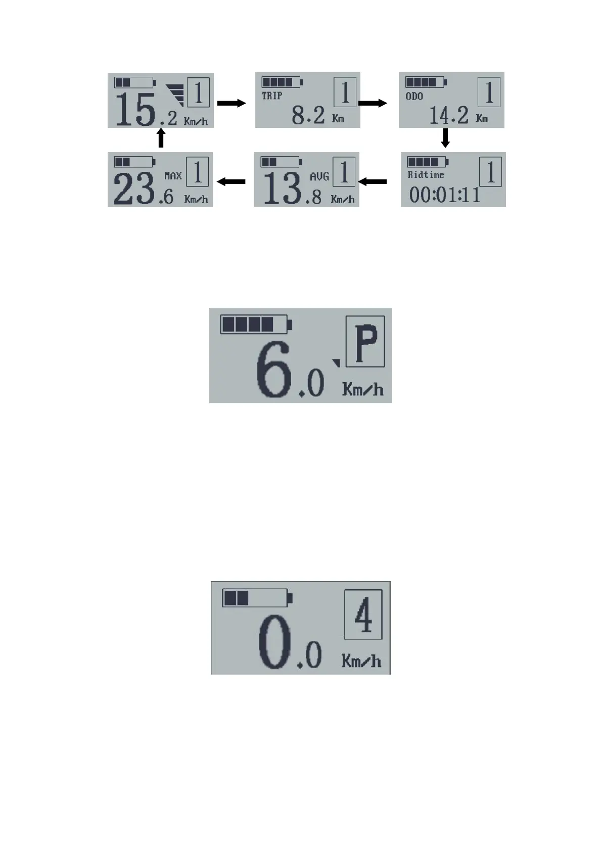 seconds, the E-bike will go on at a uniform speed of 6 Km/h and “P” is shown on the