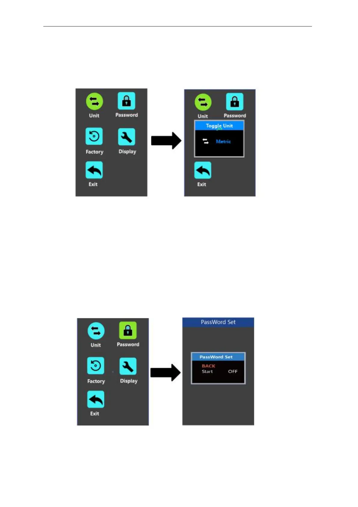 To toggle the unit, press the “+” button or the “-” button to choose the desired unit and