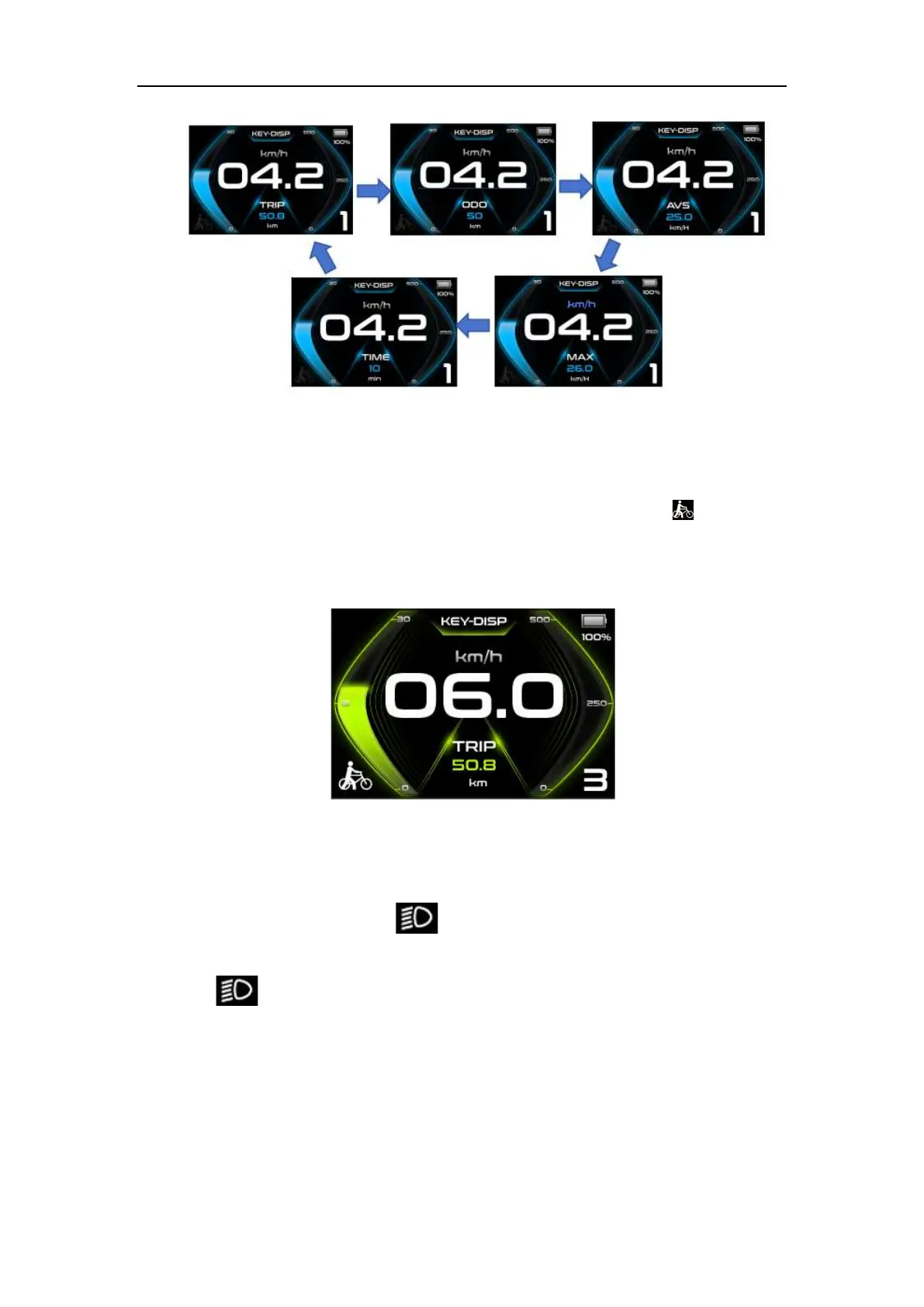bike will travel at a uniform speed of 6 Km/h while the screen displays “ ”. The push-