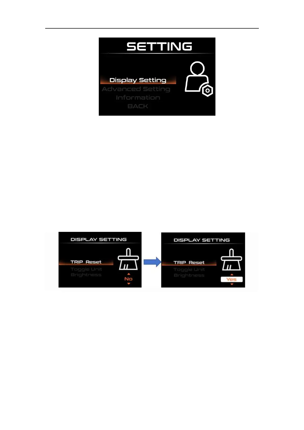 (AVG), Trip (TRIP), riding time (Time)), short press "i" again after confirmation, save and