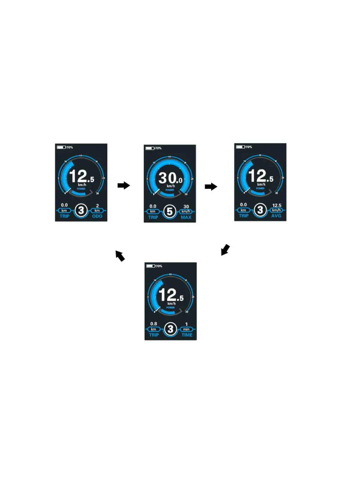 After switching on the E-bike system, the display will show Speed and Trip Distance as