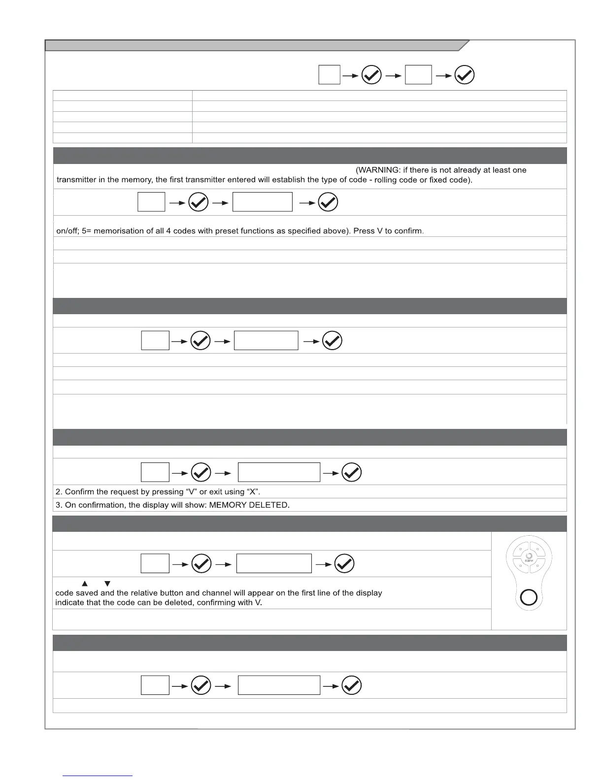 This procedure allows a radio code to be deleted from the memory of the RX4X receiver using the transmitter memorised.