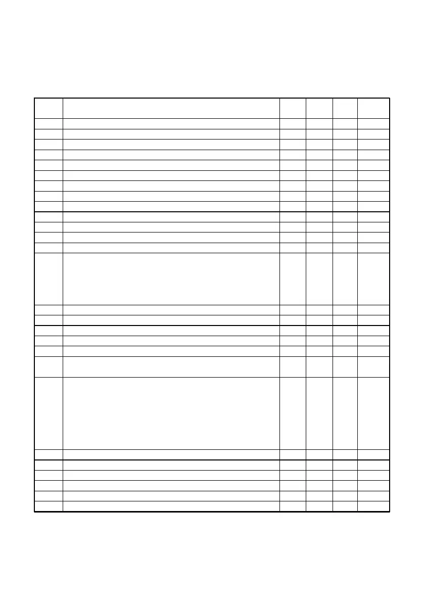 allowed to set, step of the parameter during the setup. The last column shows factory