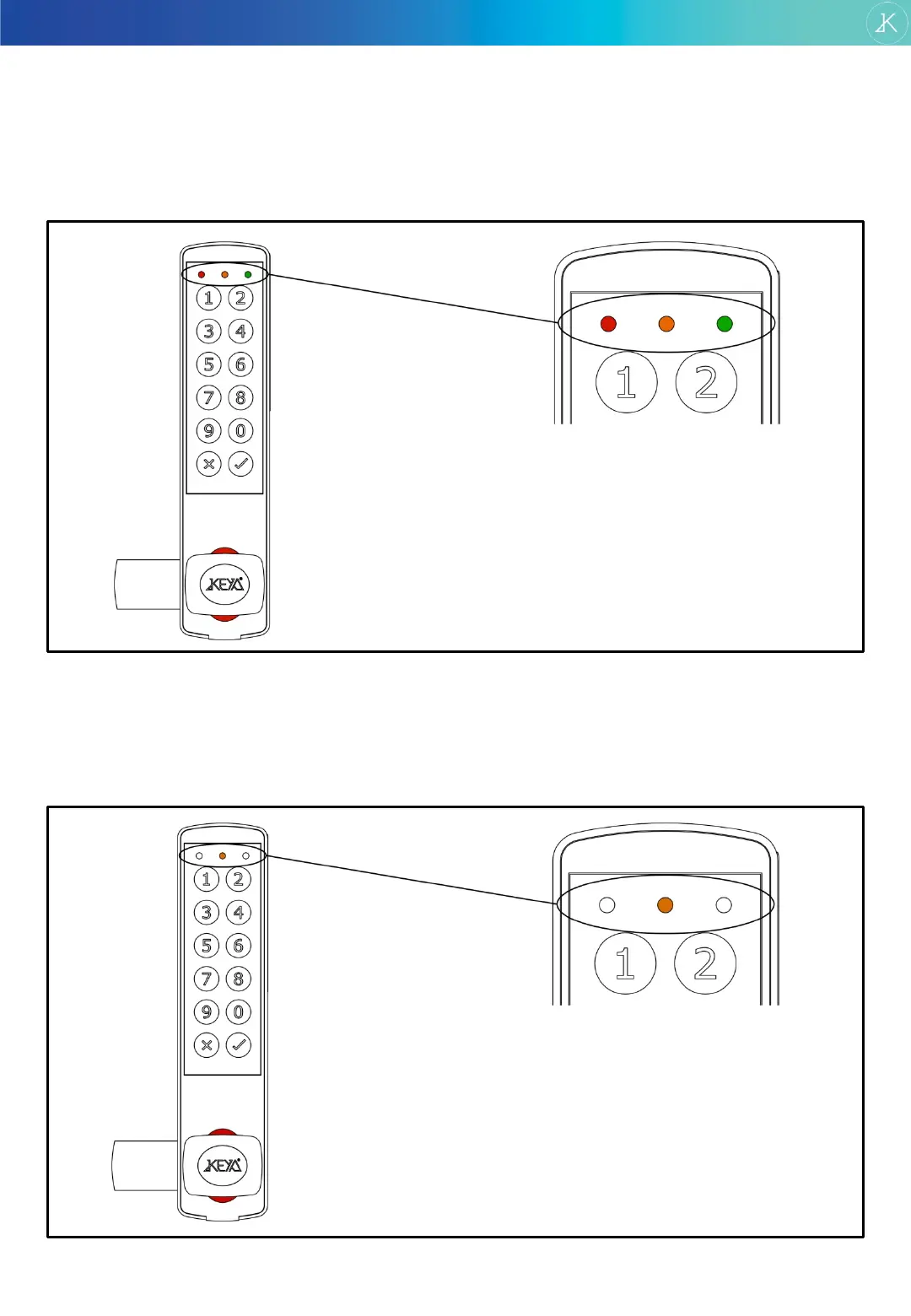 After introducing the correct code and pressing ENTER, the three LEDs blink at the same time (green-yellow-