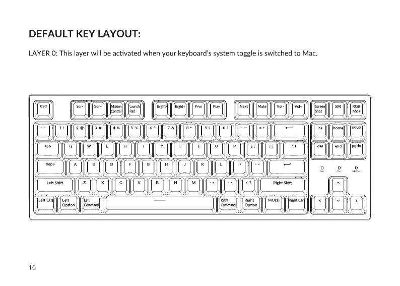 LAYER O: This layer will be activated when your keyboard's system toggle is switched to Mac.