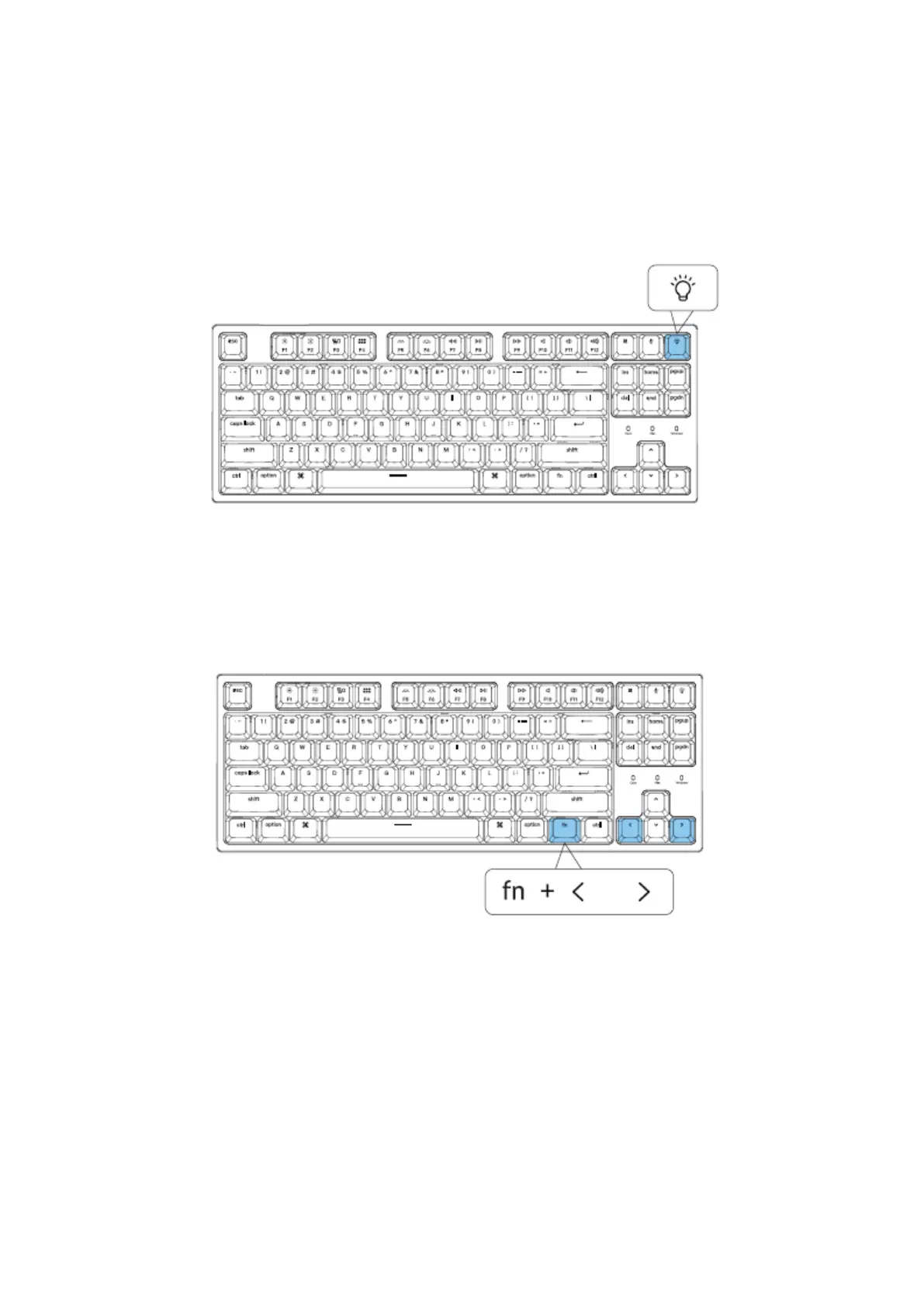 Für die RGB-Version - Drücken Sie fn + Pfeil nach rechts / Pfeil nach links, um die Farbe