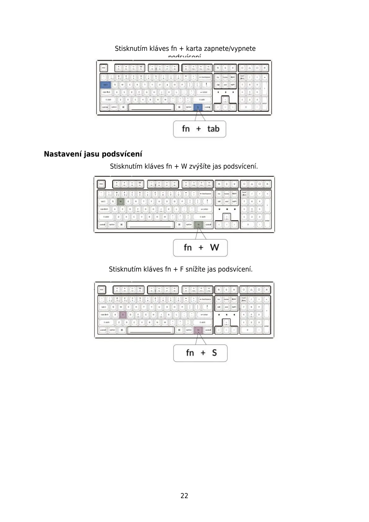 Stisknutím kláves fn + F snížíte jas podsvícení.
