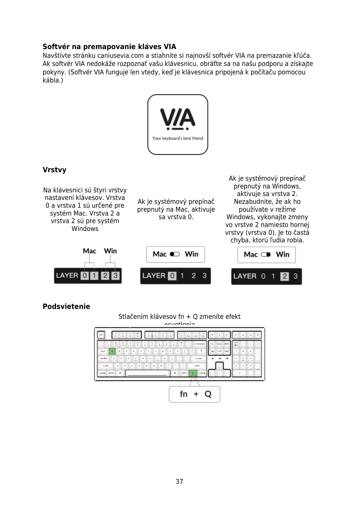 Ak softvér VIA nedokáže rozpoznať vašu klávesnicu, obráťte sa na našu podporu a získajte