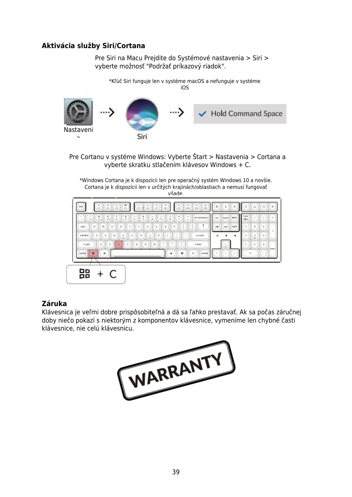 *Kľúč Siri funguje len v systéme macOS a nefunguje v systéme