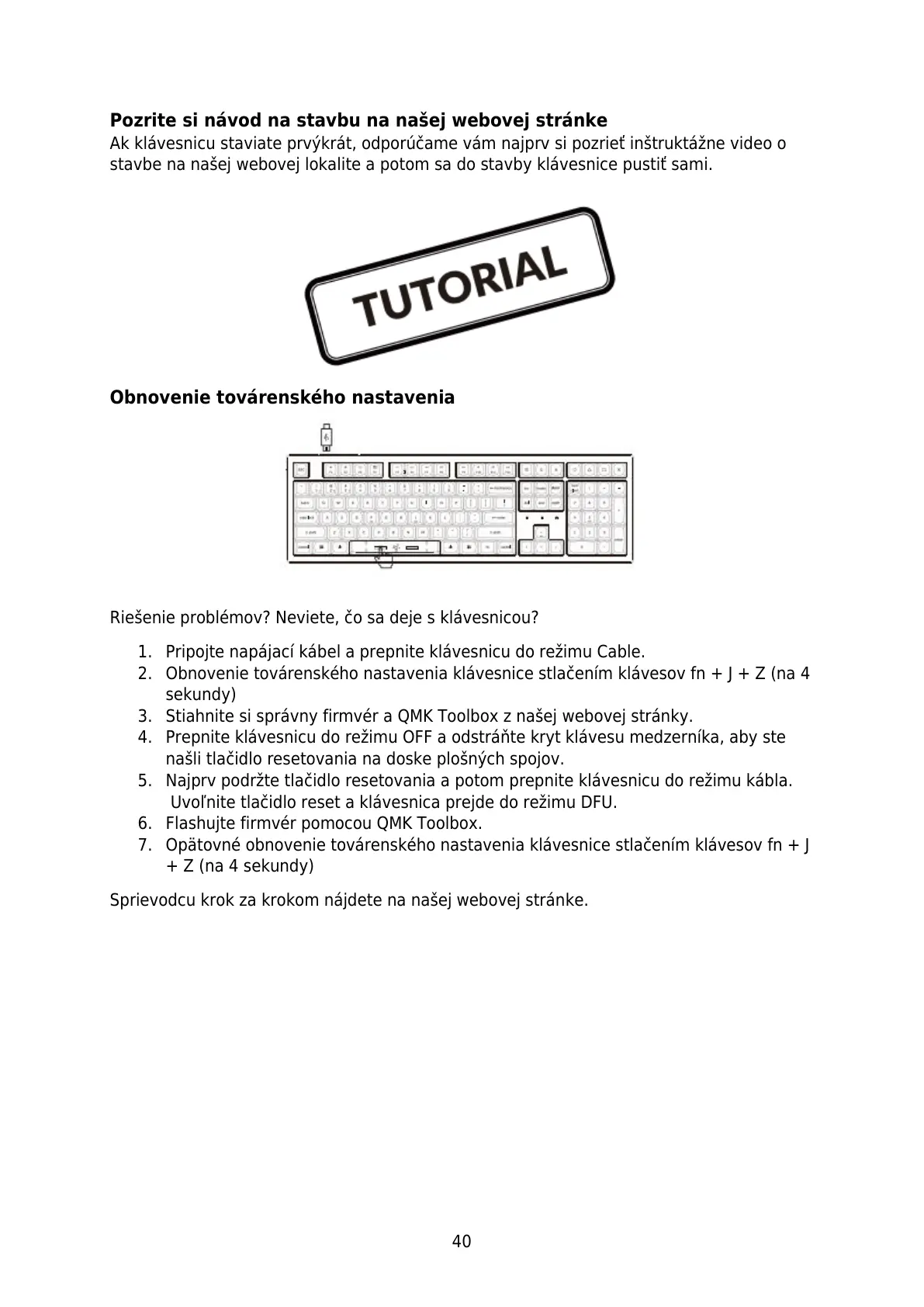 Ak klávesnicu staviate prvýkrát, odporúčame vám najprv si pozrieť inštruktážne video o