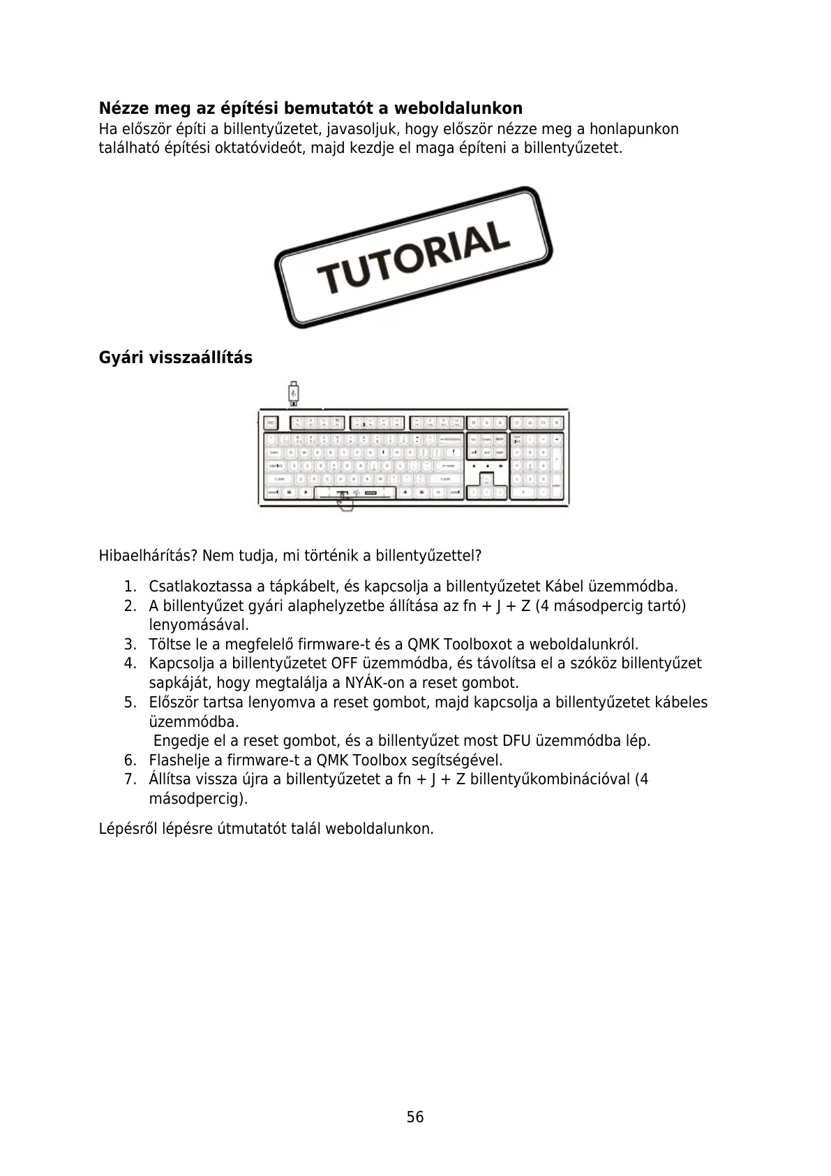 Ha először építi a billentyűzetet, javasoljuk, hogy először nézze meg a honlapunkon