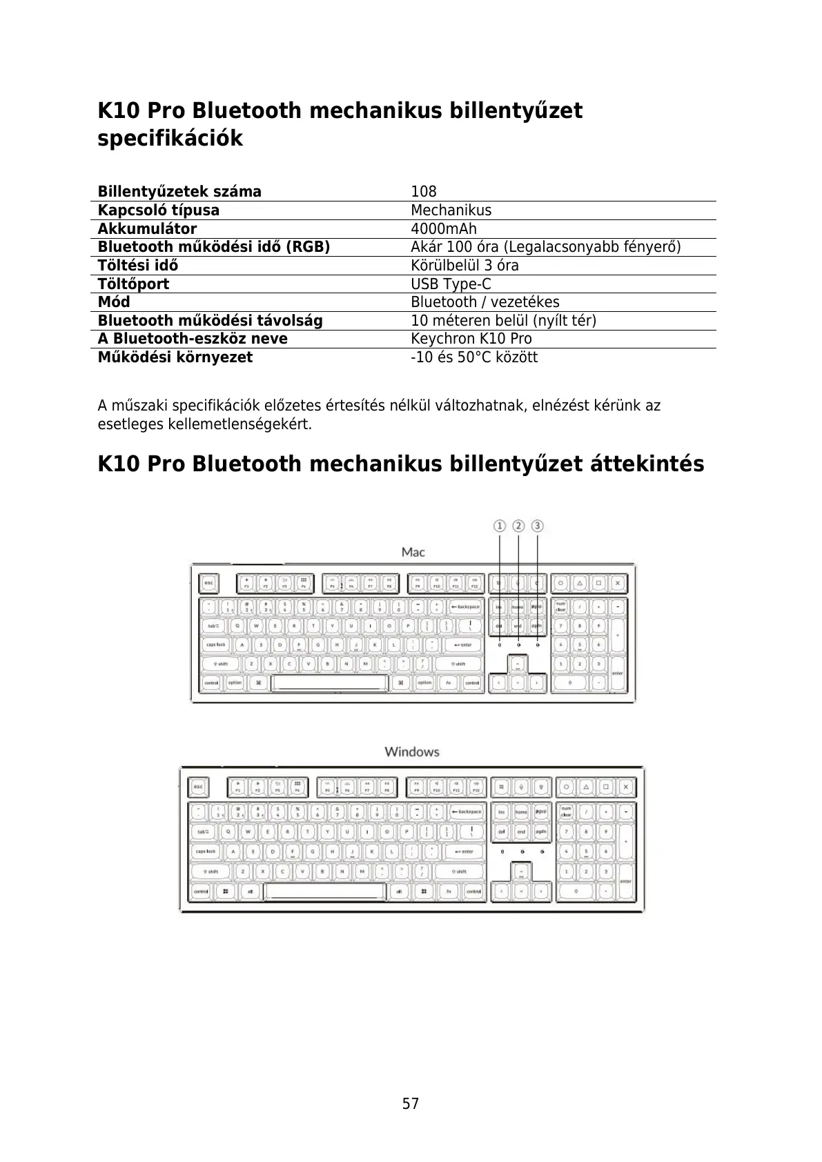 A műszaki specifikációk előzetes értesítés nélkül változhatnak, elnézést kérünk az