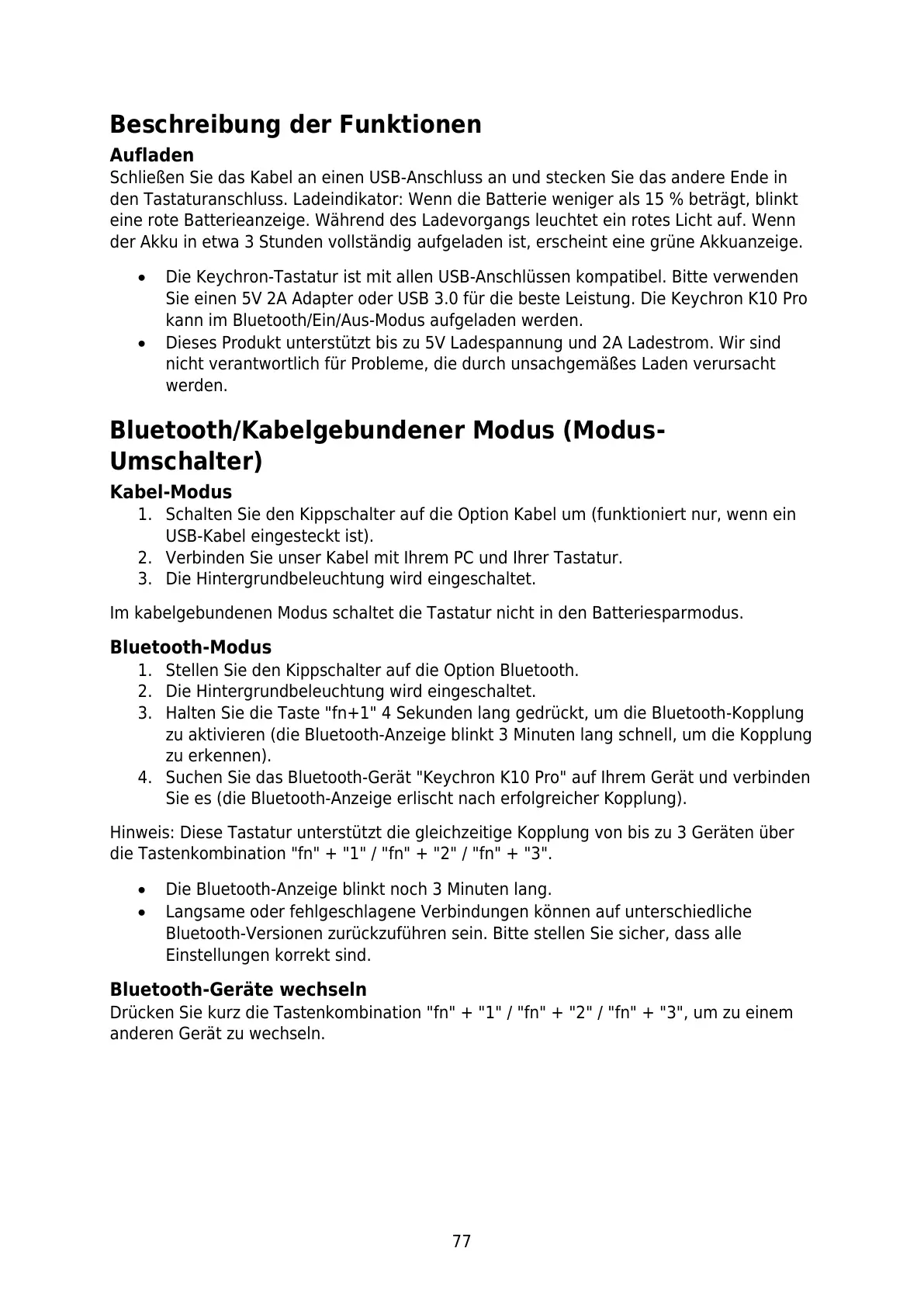 Sie einen 5V 2A Adapter oder USB 3.0 für die beste Leistung. Die Keychron K10 Pro