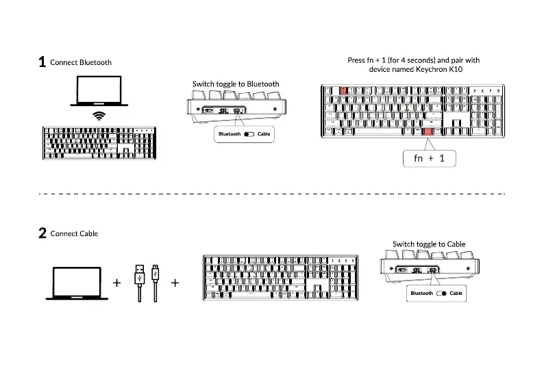 Keychron K10 - Connect Keyboard to Devices; Bluetooth Pairing; USB Wired Connection