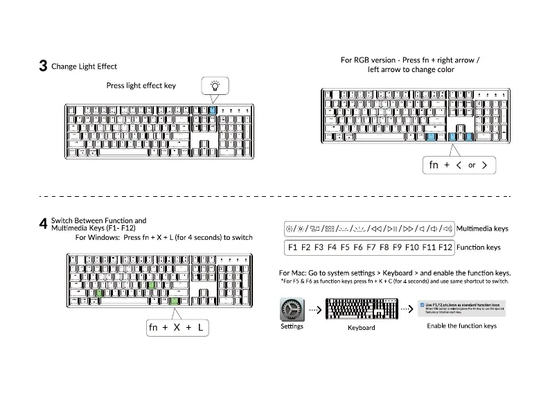 •For F5 F6asfunction keys pressfn K C (for 4 seconds)amduse sameshortcutto switch.