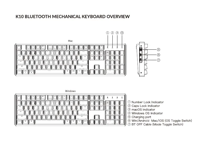 Keychron K10 - Keyboard Hardware Identification; Indicators, Ports, and Switches