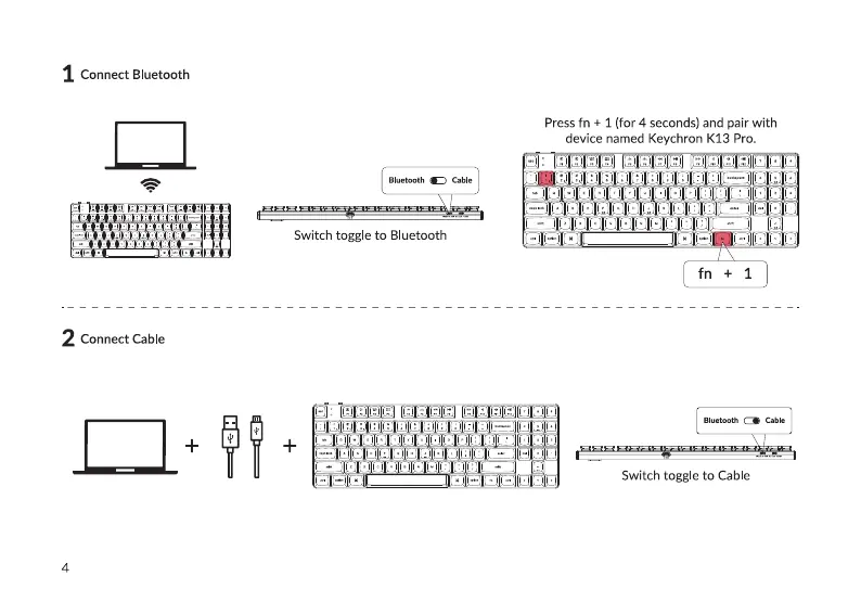 Keychron K13 Pro - Connection Modes; Connect Bluetooth; Connect Cable