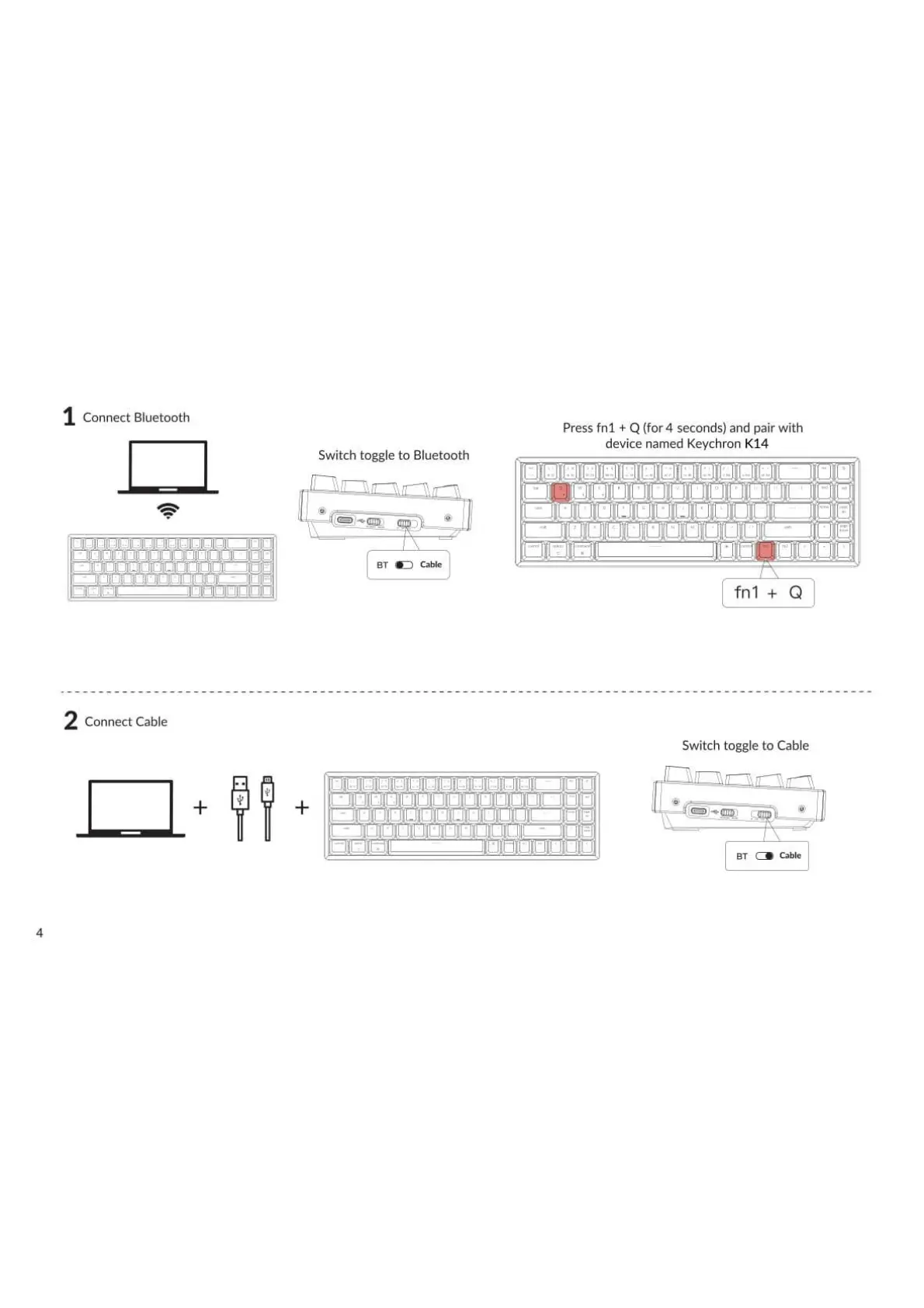 Keychron K14 - Keychron K14 Connectivity; Connect via Bluetooth; Connect via Cable
